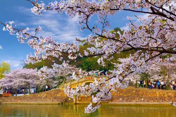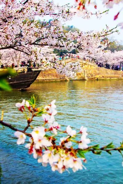 待到3万株樱花齐齐盛放,漫天的粉色足以撩起你满满的少女心,衬上蓝天白云,古典的江南雅筑,更是美得令人欣喜。