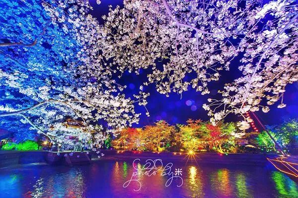 璀璨的彩灯将樱花变得更为妩媚,和恋人牵手、散步、赏樱,在浪漫的星空下做出爱的承诺。